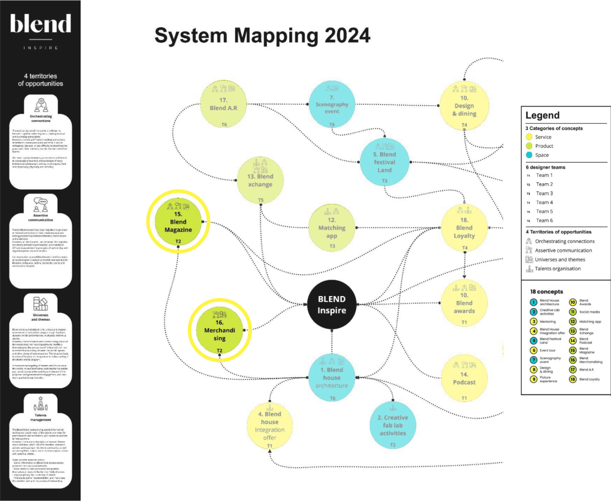 Blend facilitates connections between companies and diverse peripheral communities, providing events that bridge the gap between them. By highlighting the diversity within these communities of artists and aligning with companies' positioning needs, Blend aims to foster mutual understanding and collaboration. The objective is to create a seamless and desirable user experience through various touch points, enhancing the connection and common interests between the two entities.