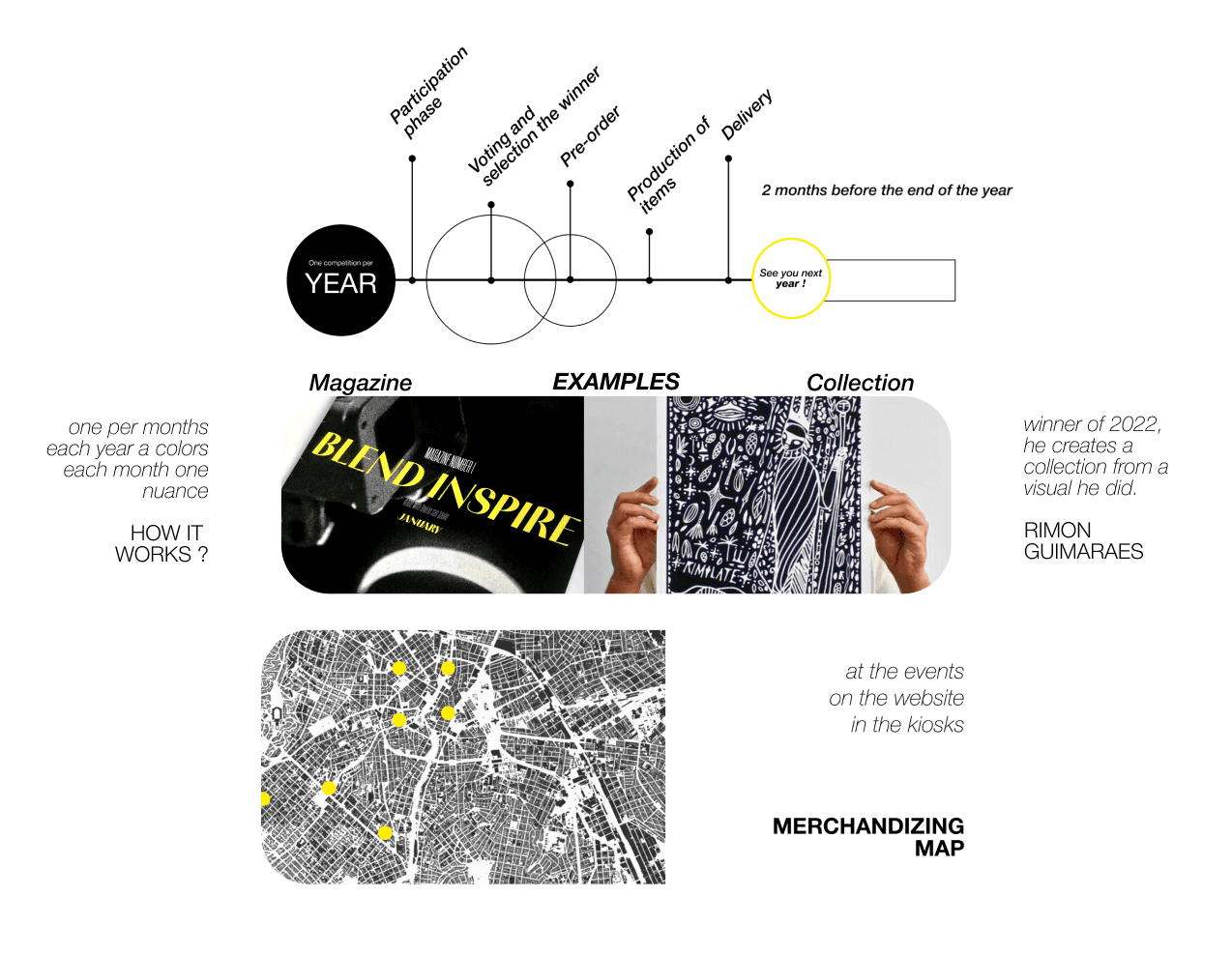 During this project, we worked primarily at events, talking to and receiving data on the spot from both artists and CEOs. We also worked with platform users and the Blend community to find out where they stood on the issues that were at stake and those that lay ahead. Collaboration with an artist such as Rimon Guimarães was our final pillar in prototyping our value proposition.